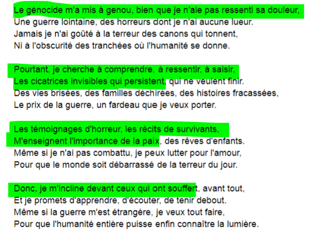 The assessment structure in French 6 is meticulously designed to reinforce the decolonisation of the curriculum and promote empathy: